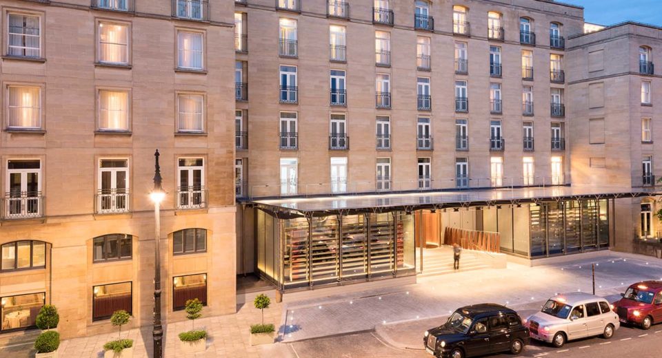 The architectural design of The Emory is the work of the late Richard Rogers and his partner Ivan Harbour of RSHP. The building features a distinctive ‘sails’ structure atop its roof, contributing to its unique silhouette in the London skyline. The hotel’s entrance is discreetly located on Old Barrack Yard, providing guests with a private and exclusive arrival experience.